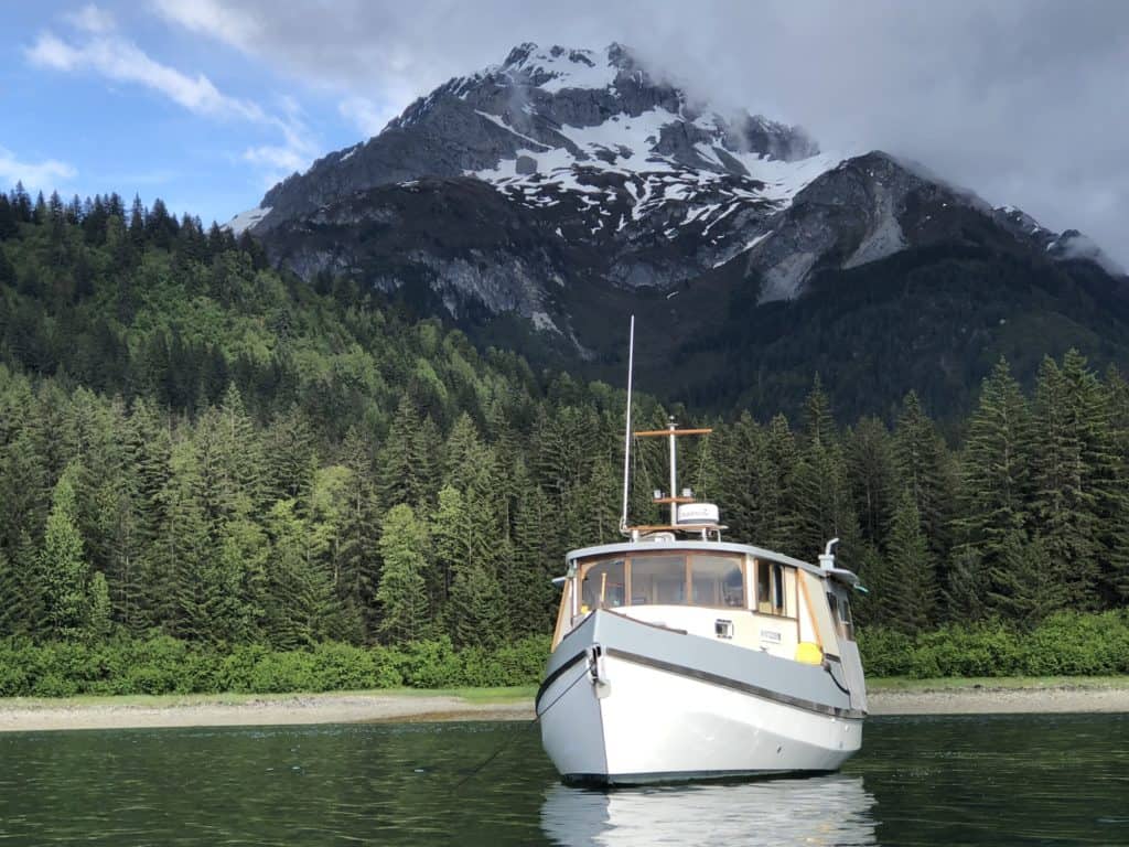 To be honest, owning Raven has been a little like being able to go play in a floating, take-apart dollhouse that moves along smartly and can gunkhole into tiny coves where big boats can’t go. We’ve taken her from Port Townsend, Washington to Glacier Bay, Alaska, and though she’s not an offshore boat, we’ve made carefully-planned open-water crossings safely. And we’ve made long cruises economically. Now it’s your turn to own and enjoy her. Find her listing with more photos and information on the “Boats for Sale” page.