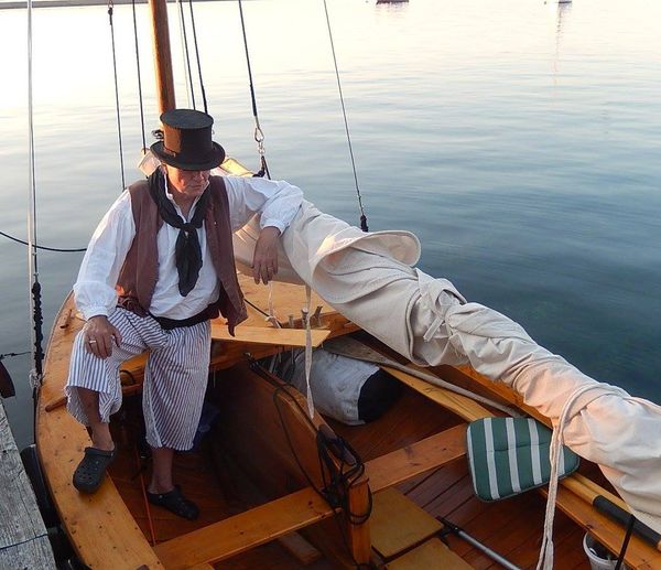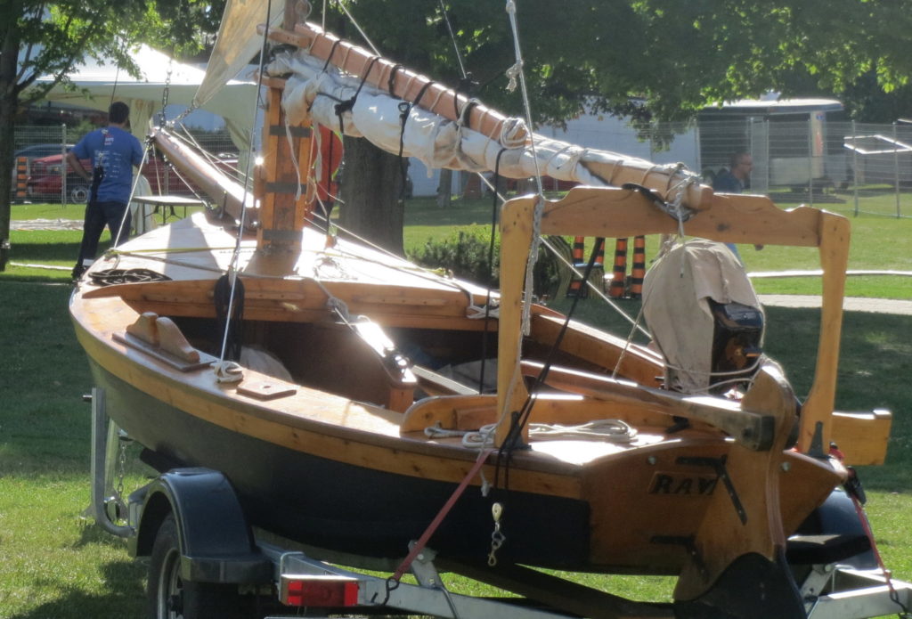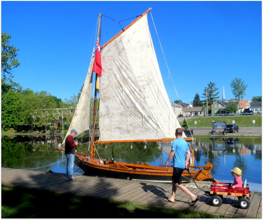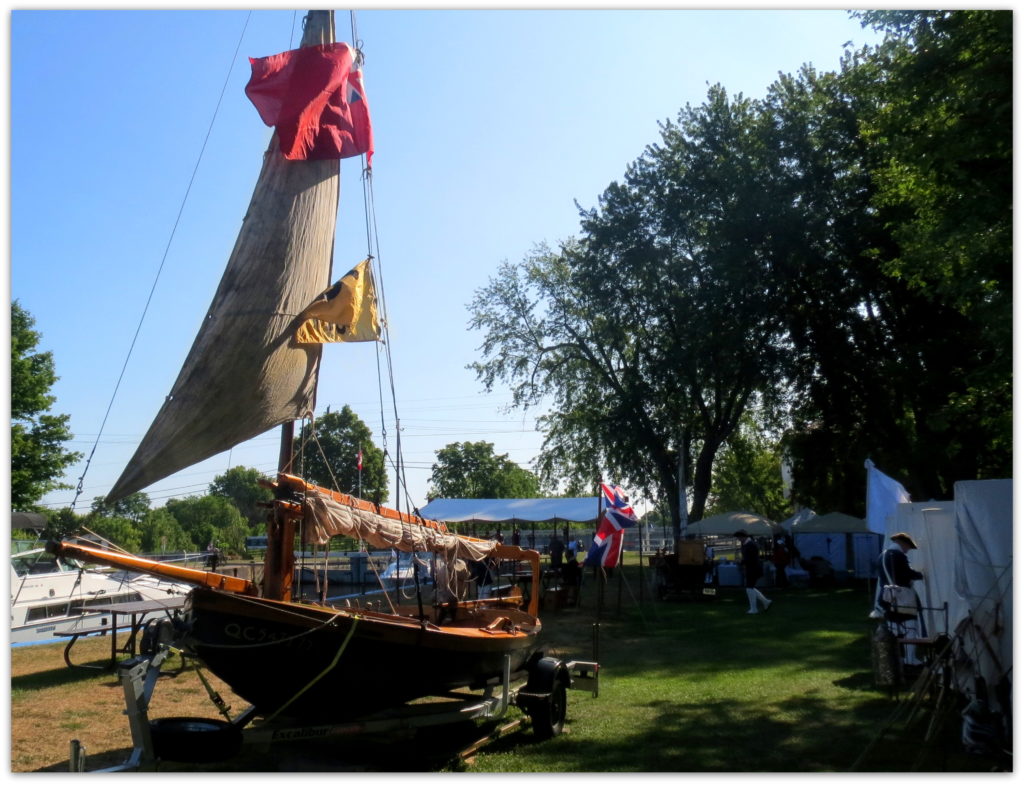 It is a hand made wooden reproduction of a late 19th century cat boat used mainly on the east coast of the USA for lobster fishing and rum smuggling. My historical group, ‘McCaw’s Privateers’ show it off at various historical sites along Lake Champlain and the St. Lawrence River, including Tall Ship events.