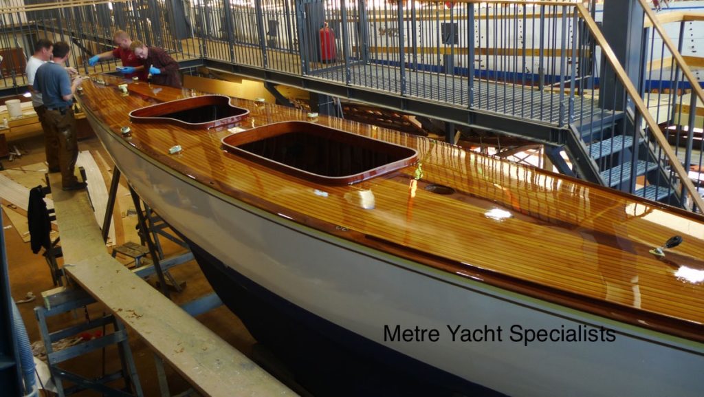 Our specialties include wooden spars, restoration of the Metre class boats and modern modular wooden boat construction. Check the link to “flickr” on this page for a full and up to date viewing of what we are up to.
