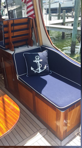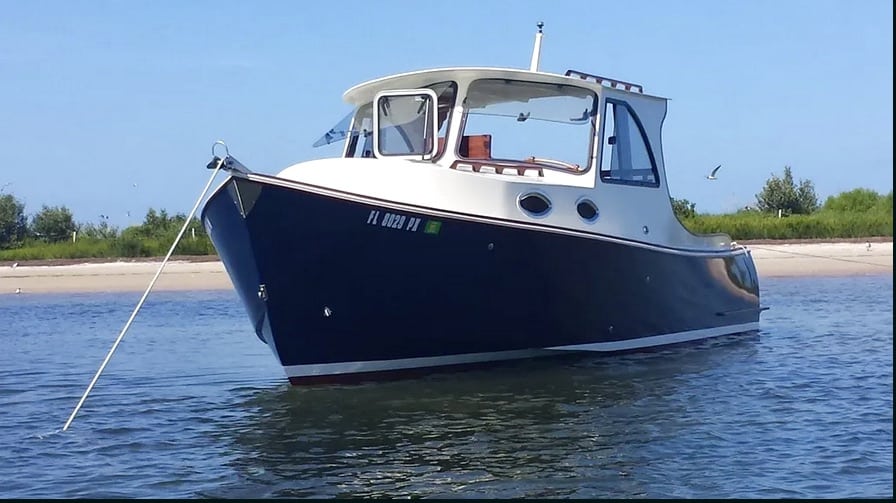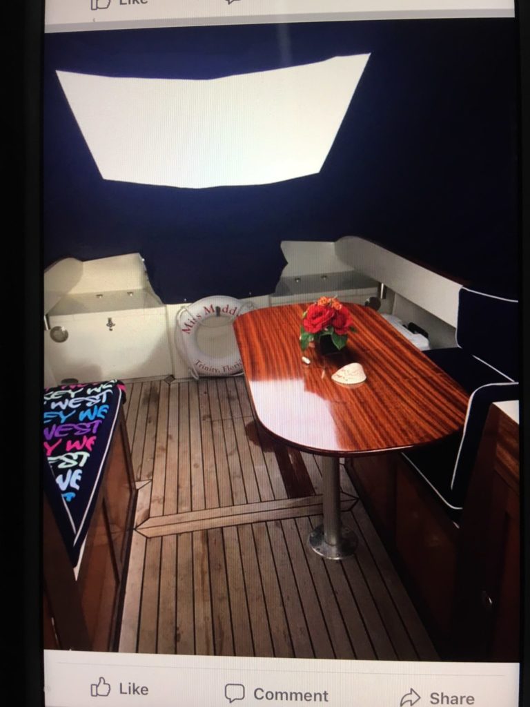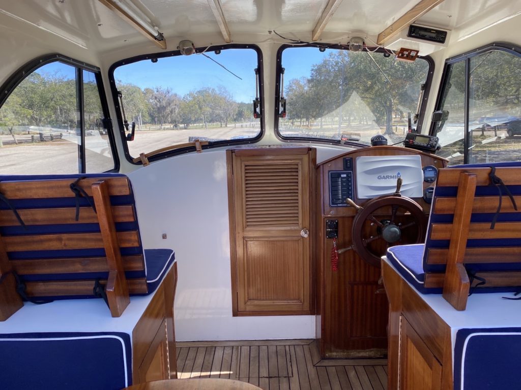 As the new owner, I have made some improvements and continue to. A flush toilet/tank combo from Dometic is in the enclosed head replacing a port-a-potti along with discharge and pumpout capabilities. An additional fresh water tank for the toilet was located in the head. A Solbian 175 W flexible solar panel was installed in custom aluminum channels on the hardtop. The system has a new battery bank and inverter. During this process, additional fuses & breakers were added, much wiring was upgraded or run through new conduit to tidy things up. The exterior fuel filter was upgraded. The hydraulic steering lines were upgraded with high pressure Seastar lines and a full flush of the pump greatly added to maneuverability. The linkage in the throttle was adjusted to facilitate a peppier take-off when engaging into forward and to allow full opening of the throttle in the down position as it was impeded by the construction of its wood mount. The wood wheel was replaced with SS for easier handling. A new Garmin Fantom 18 Radar was installed on the front of the hardtop adding to the Garmin GPS. The boat was designed to have a sealed bilge which simply didn’t work so 2 bilge pumps were added along with 6 passive vents.Already a member? Log in herePhotos