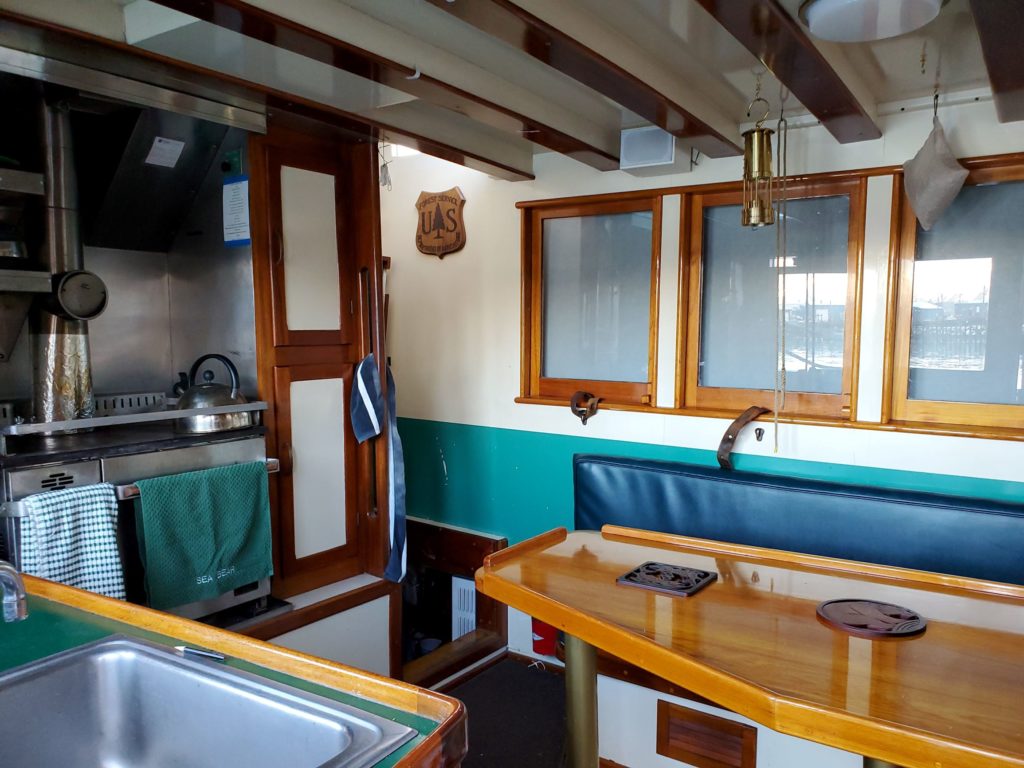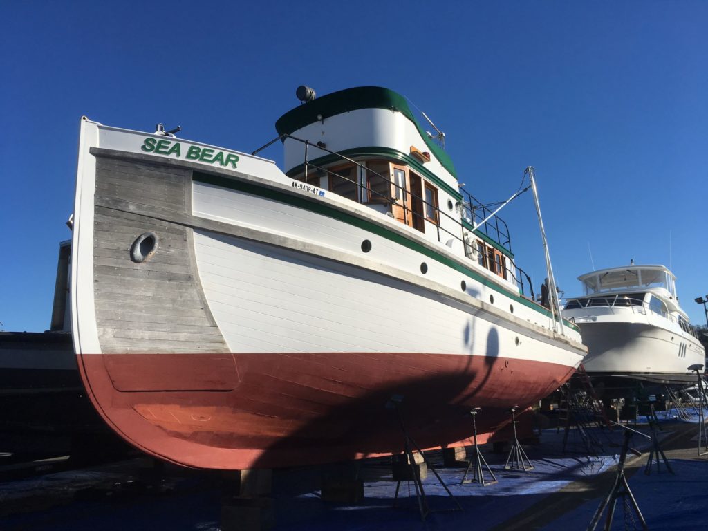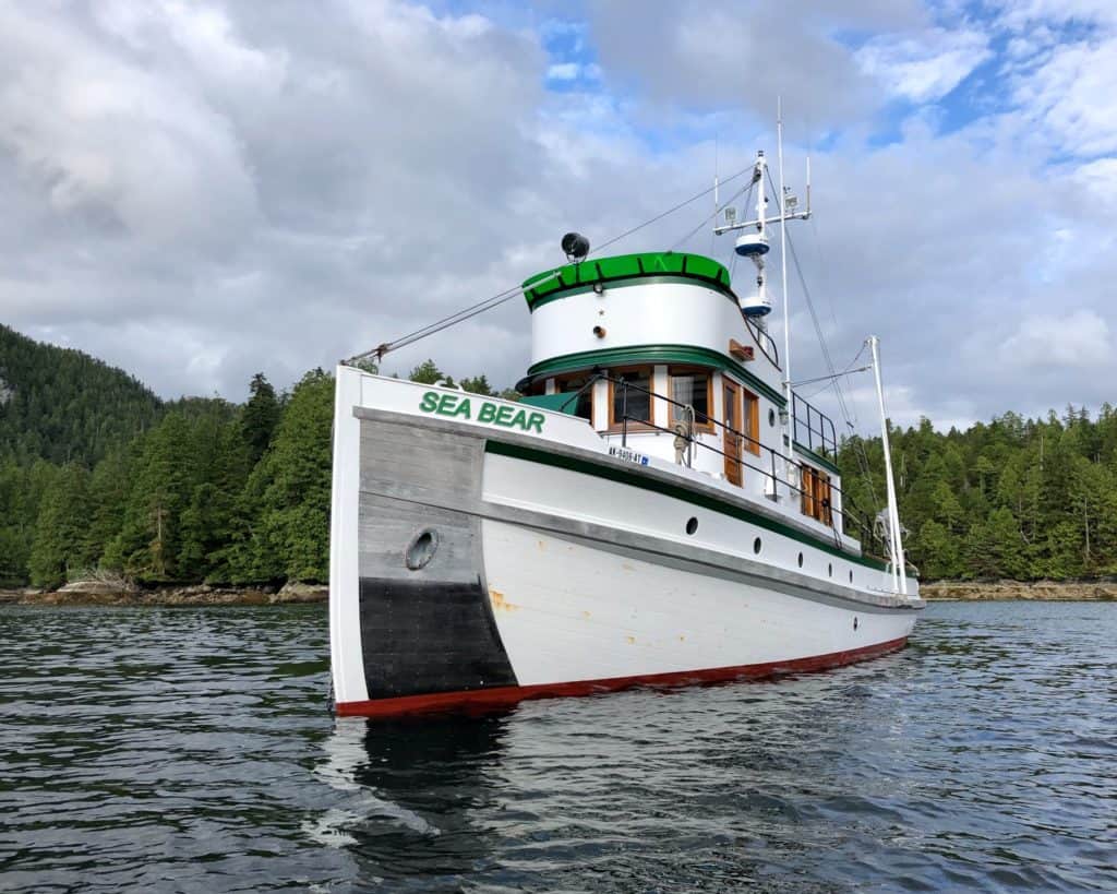 “Sea Bear”, built in 1932, was originally named “Forester” and was built for the US Forest Service Ranger Boat Fleet in Alaska, where she served from 1932-1964. As “Forester”, she plied SE Alaska waters for over 30 years, conducting patrols, rescues, and surveys.After leaving the Forest Service in 1964, she went into private ownership and was renamed “Sea Bear”, working first as part of a bear guiding operation and then as a timber skidder, all in SE Alaska.