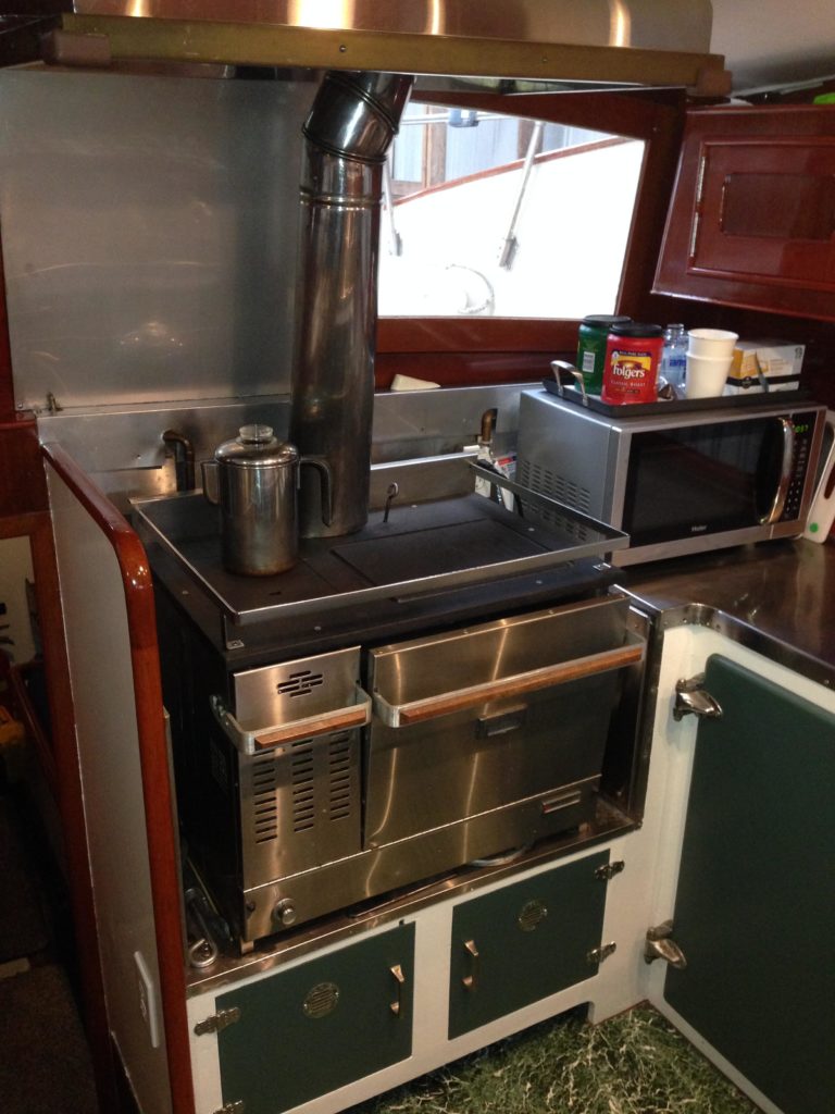 The bottom has been refastened, keel bolts added, seams re-corked. Shafts, props and cutlass bearings have been replaced. Much of the original wiring and electrical gear has been upgraded. A hydronic heating system has been installed to augment the heat provided by the Dickinson diesel stove and electric heat. Heads and black water systems have been replaced or upgraded to meet current environmental standards. Electronics and navigation systems have been upgraded. We have restored and upgraded the main saloon cabinetry to be more in keeping with the original design and provide additional storage. The refrigeration system has been modernized to be more efficient and serviceable.