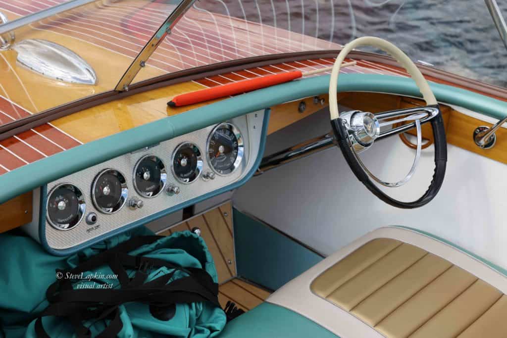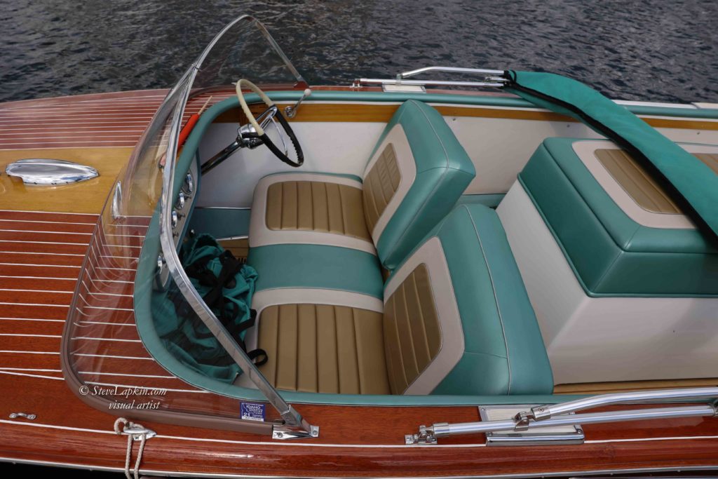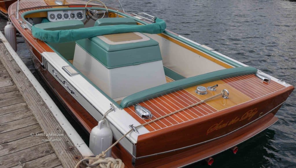 SEAS THE DAY is a 19 foot 1961 Chris Craft Continental delivered to the Chain of the Lakes Marina in Fox Lake Illinois on June of 1961. The original owner named the boat SKUL and kept the boat on the Illinois waterways and after sometime it fell in to disrepair. The family gave to boat to the second owner in 1996 with the stipulation that it would not be scrapped. The second owner started the restoration by removing the varnish and paint and rotted planking. Eventually the boat was trucked to California. I purchased the boat in August of 2013 and it took me 4 years to restore the boat. Replacing most of the port side and transom planking, having all the chrome redone, gages rebuild, and interior reupholstered. My daughter came up with the new name SEAS THE DAY and the boat was launched in Lake Tahoe on July 2017. Since then each year we have attended a few ACBS chapter events and of course use the boat on Lake Tahoe.