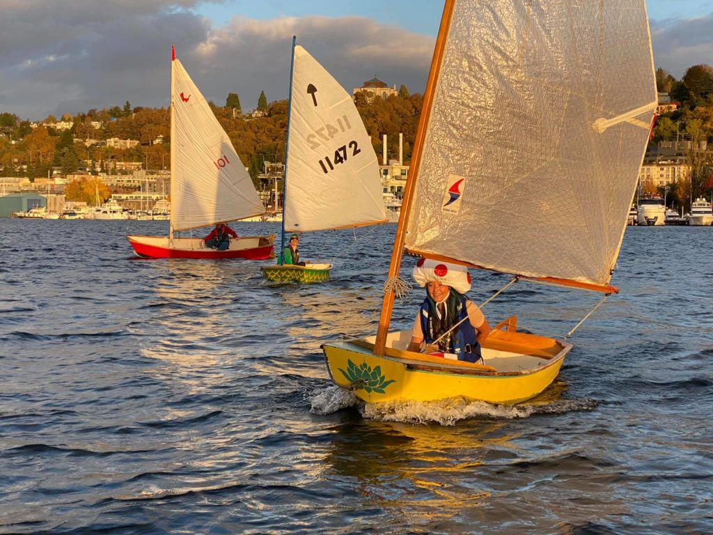 We are a very informal group. Started because I inherited an El Toro from a friend, and I happened to work at a place with a fleet of them on Lake Union (The Center for Wooden Boats). We started the annual El Toro Regatta that is hosted every fall at the Lake Union Wooden Boat Festival and enjoy getting out for random costume themed sails.
