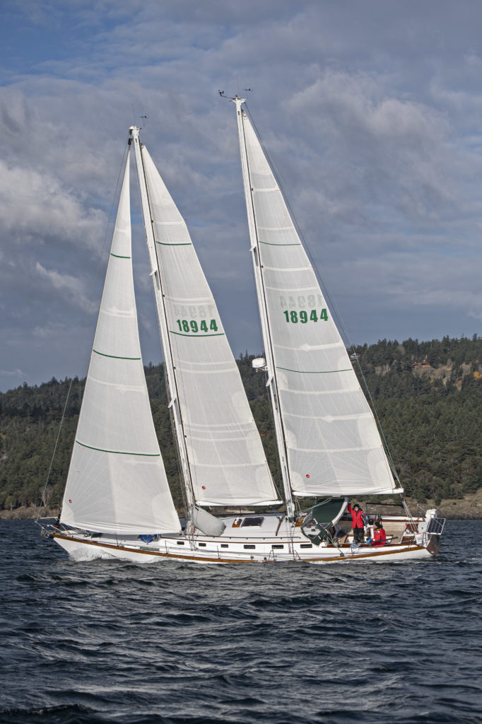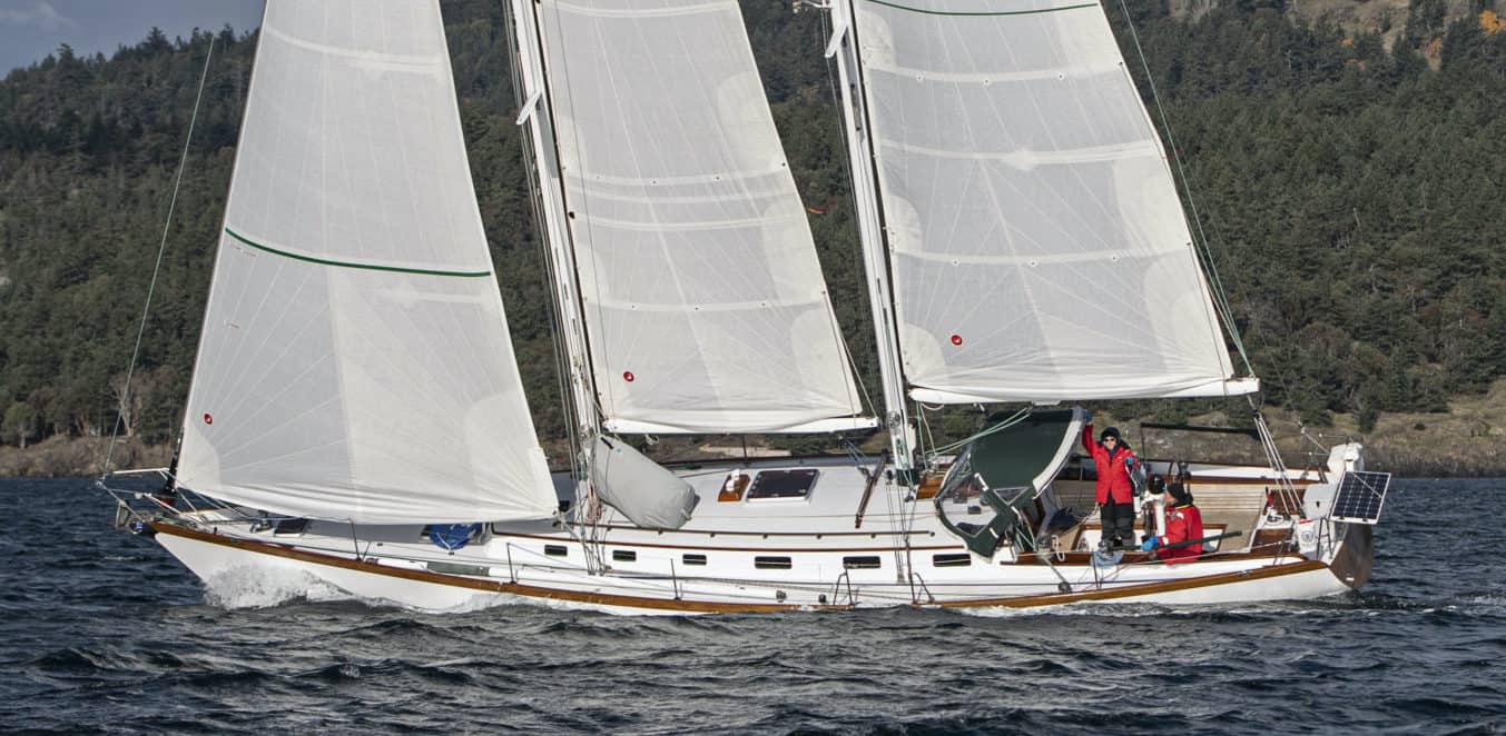 Sir Isaac is a cold-molded schooner designed and built for shorthanded offshore sailing. Her hull is built of Port Orford cedar and her modified fin keel is constructed of bronze. From 2006 until 2016 she lived in our shop while we completed her renovation that included a new cockpit, decks, cabin and interior.