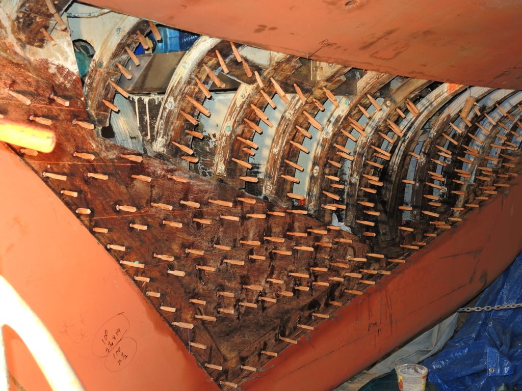 Snow Star could be called a precursor to a cold molded boat as the extreme bends in her stern sections are triple planked, again with epoxy.Snow Star has been in the same family for 48 of her 55 years afloat. A well kept secret. She has cruised long and far, crossed oceans, (25 days at sea) raced to Bermuda three times, won a fair share of silverware on the local race courses and has been recognized at the concourse d’elegance at Mystic Seaport’s WoodenBoat Show.