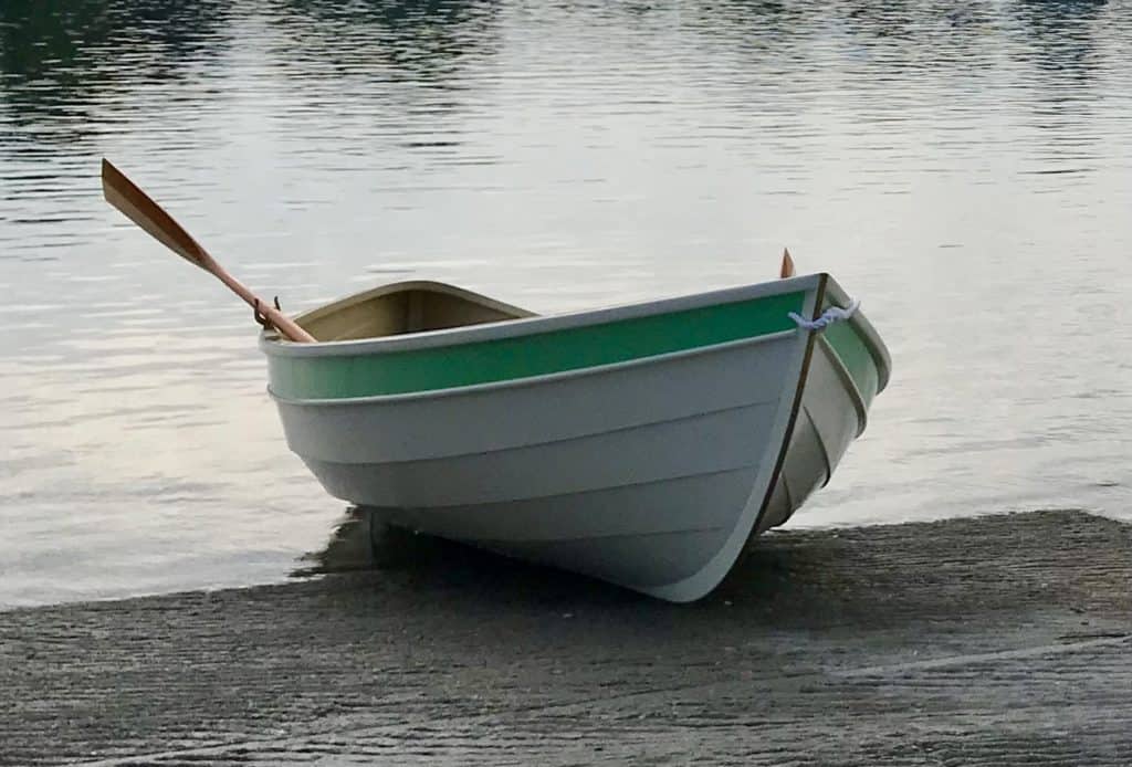 Just as Doug Hylan wrote: “ These are great little boats, seaworthy, stable, and easily rowed. Here is a pod that is a bit smaller than most, but she will still carry a big load and bring you through some lumpy water with confidence.”She’s as good as it gets: just for some fun exercise rowing, or as tender hauling people and stuff to and from the big boat. I’ve been out in a good chop and no water got into the boat.