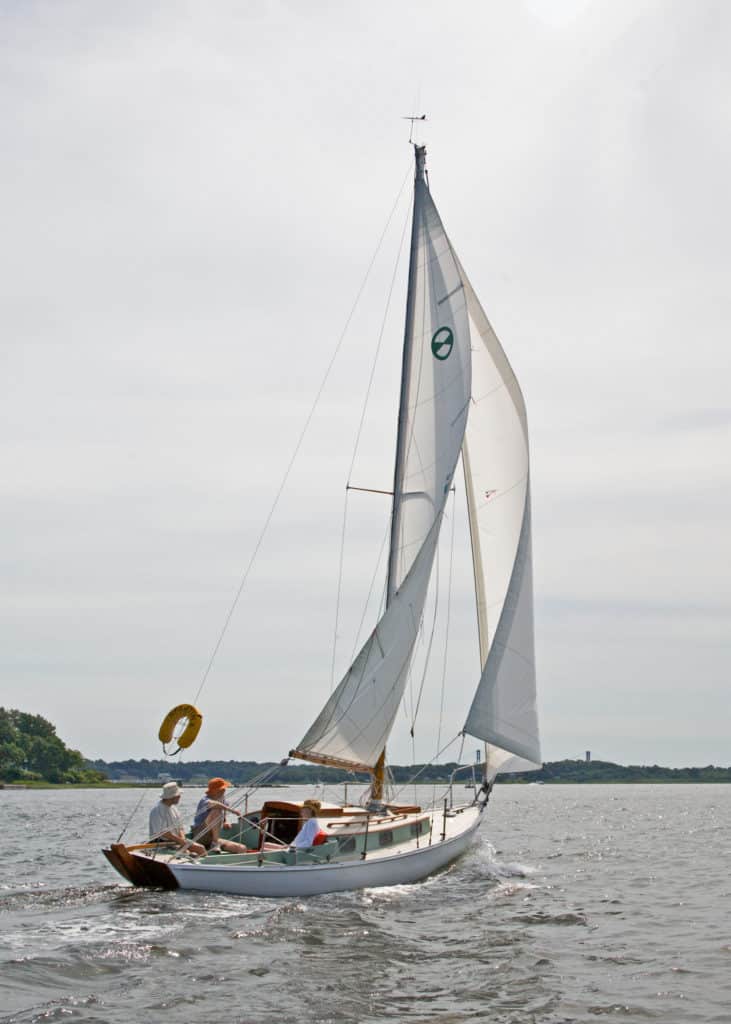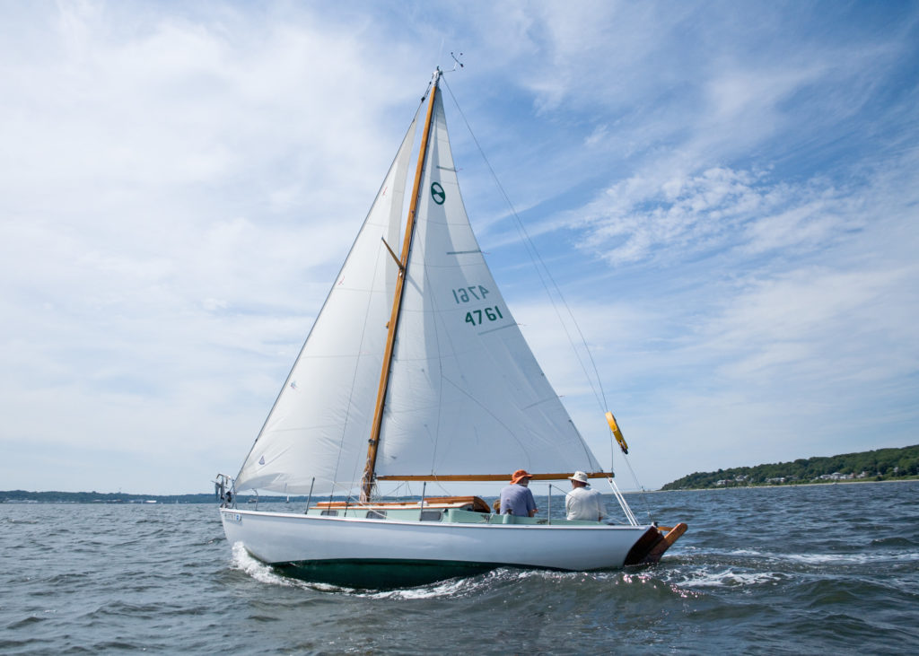 Spartina is an Al Mason Ostkust built in 1969-70. She is slightly modified from the original plan: has a masthead rather than the original fractional rig, and the house is longer than original plans – mast steps through the cabin top – much more room than original. Traditional construction – cedar on oak. We have owned her since 2001.