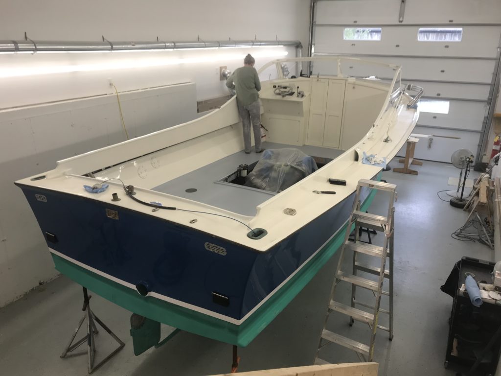 SPIRIT II is a sturdy, reasonably sized boat originally designed for striper fishing which delves comfortably in chaotic waters with surging gullies of foaming water. She has a full keel, a big cockpit, dual controls, an aft tiller, a powerful engine and has the “heft to handle the breakers”. She is a remarkable design “developed to pursue and bring to bait the striped bass”. This design served as a standard for New England bass boats for two decades. Designed by the Eldridge-McInnis Firm and built by Fred Brownell of Mattapoisett, MA . Brownell would become more well known by his hydraulic boat trailers and boat stands. Fred Brownell built 18 of the 26′ Bass Boats, locally referred to as the Cuttyhunk Style offshore Bass Boat. We believe this to be hull number #14 out of the 18 built. Originally built for Mr. Huntress , named “Initram”. Many of the great legendary bass & blue fish charter boats captains from Cape & Islands used the 24′ and 26′ Brownell boats. Still to this day the biggest record Striped Bass was caught off a 24′ Brownell built boat. An article in Nautical Quarterly would describe the 26′ Brownell as a boat designed by a fish. All these pluses make for a great all around family boat.Already a member? Log in herePhotos