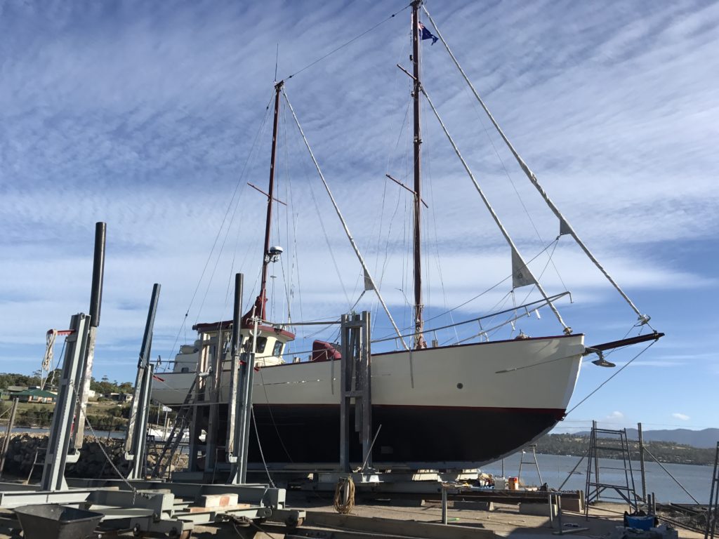 Fred Marks built Stormalong at Esperance near Dover from plans supplied by Charles Lucas between 1946 and 1948. She was built over a eucalyptus hard wood keel and eucalyptus frames planked and decked in Huon Pine. In 1948 she was rafted alongside The May Queen and towed to constitution dock in Hobart where the engine was fitted. The first engine was reported to be a ten HP National. Freddy used Stormalong along the south west coast as a crayfish and fishing boat. Win & Clyde Clayton purchased Stormalong in 1954 and owned her until 1965. During these years her home port was Port Davey in South West Tasmania. Since 1965 Stormalong has had a number of owners all of whom used her in the Tasmanian crayfishing industry. In 2008 new owners Bob and Wendy Walters had her converted from a fishing ketch to a motor sailer with accomodation forward and aft. She has been owned by the current owner since 2015 and has been gradually undergoing small but important restorations.Already a member? Log in herePhotos