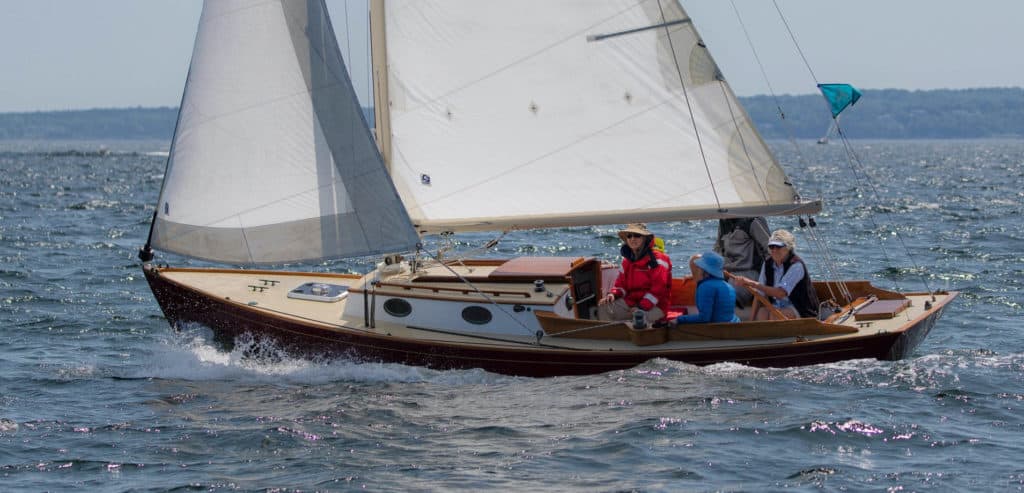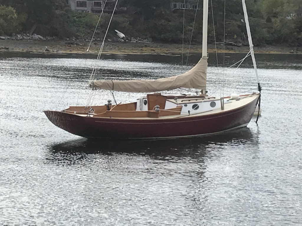 Joel White designed daysailer based on Nat Herreshoff’s Alerion. The boat, Sunny Day, named for a favorite Springsteen song, is the cabin version with marine head and 2 berths and a mini kitchen. Sunny Day was restored and customized by French & Webb in Belfast and has custom teak seats, and an electric engine (Thoosa) with 2 24V Torqeedo batteries and an approximate range of 20 miles at 4 knots. Successfully raced in the 2019 Camden Cup (i.e. in race 1 placed 5th in our very first race with her beating the eventual winner of our class– race 2 we do not discuss). She sails like a dream on all points of sail.Already a member? Log in herePhotos