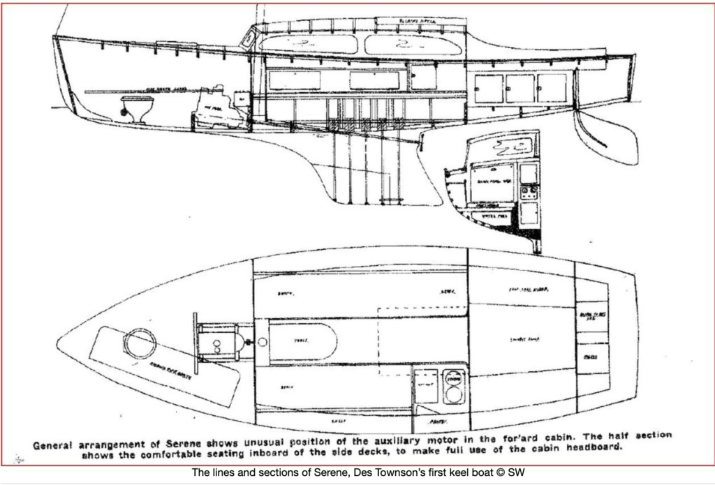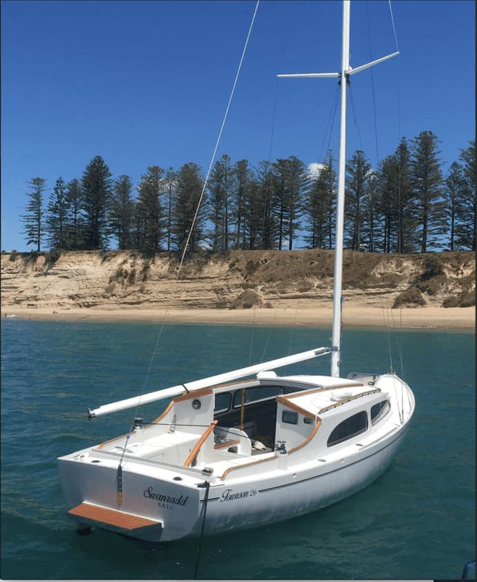 Swanrad is a Townson 26′ “Serene” design. Des Townson was a brilliant, self taught New Zealand yacht designer and builder. The Serene design (1961) was his first keelboat design, after success in fast, good looking dinghys. His sailboats/yachts followed and have developed a legendary following in New Zealand. The Serene design was radical for her time, with the engine placement forward and with a roached mainsail with running backstays.Already a member? Log in herePhotos