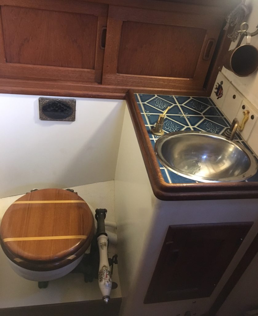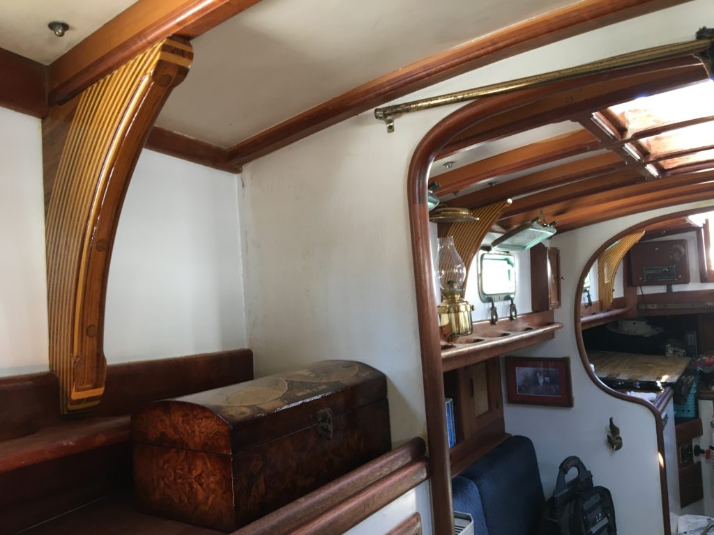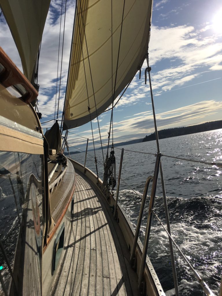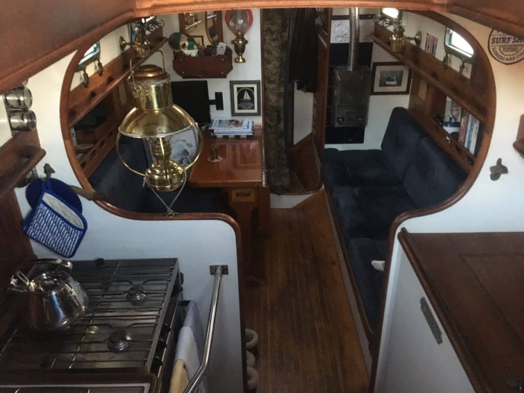 Displacing 16,000 lbs with 50% lead ballast in the keel, she’s stout and fast.
