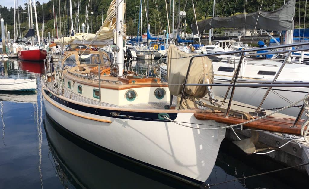 Beautifully built in teak and Alaska yellow cedar on a heavily laid-up fiberglass hull.