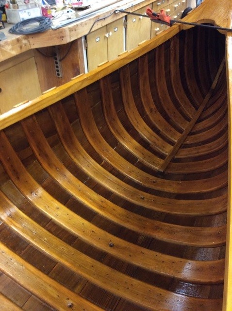 Today however, due to the blight caused by the Emerald Ash Borer, supplies are limited especially in lengths approaching 16 feet. We were fortunate however to find an upstate source for this beautiful hardwood which we immediately secured for the project. Eastern White Cedar was also secured from Crosby Boatworks.