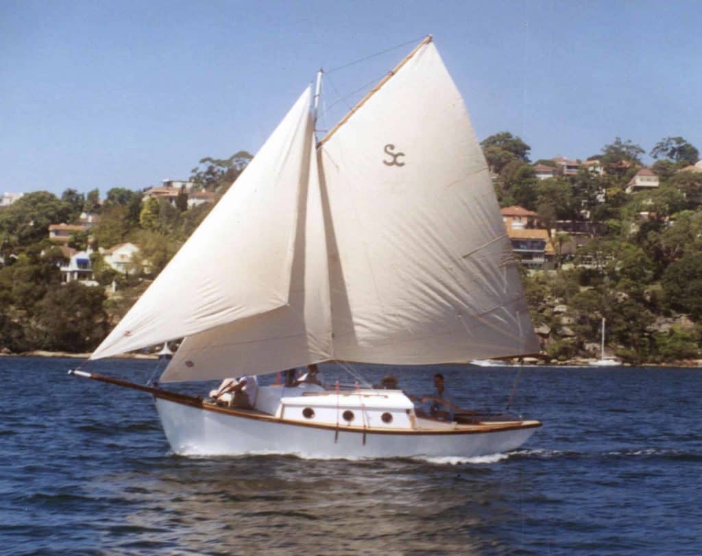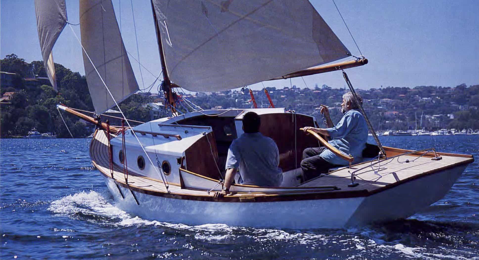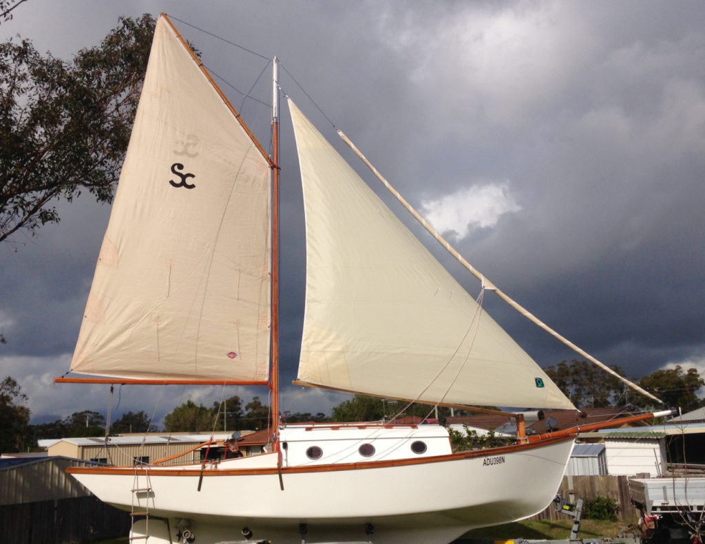 Wild Wood is a Scruffie “Scintilla”, being a 24′ gaff rigged cutter. She is a plywood kit boat which was mostly built by a professional boatbuilder and then fitted out by me.I have since redesigned the rig, converting it to an ‘aft mast rig’, which involved moving the mast sternwards by 2m (6′) and lengthening it so it sits on the cockpit floor rather than the cabin roof. This was after I had tried a tabernacle design which did make it easier to raise the mast but still had its own problems.