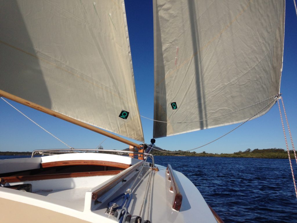 Video of sailing on Port Stephens (August 2015). First try of new cut-down mainsail. 6.5 knots - no loss in performance with the new rig.