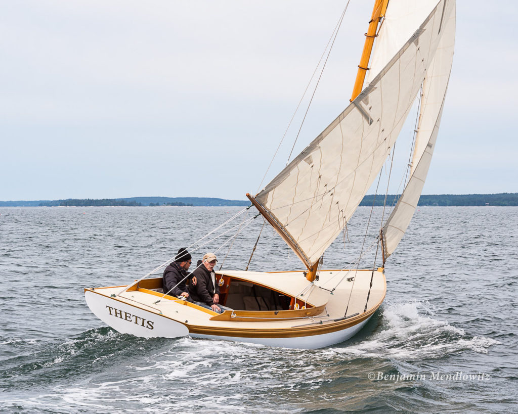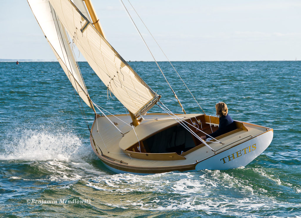 THETIS is beautiful, sea kindly and fast. The big cockpit is a pleasant space to work or relax and the cabin is fine for naps, overnights and enjoying an intimate view of plank on frame craftsmanship!She is a faithful replica of the original Alerion on display at Mystic Seaport.Already a member? Log in herePhotos