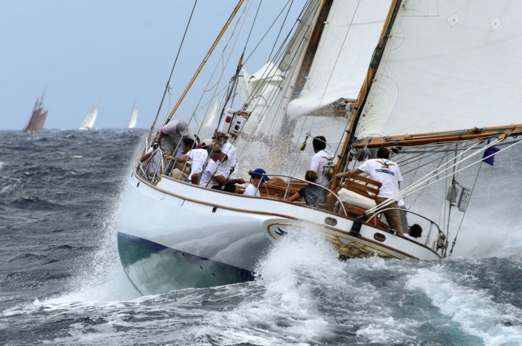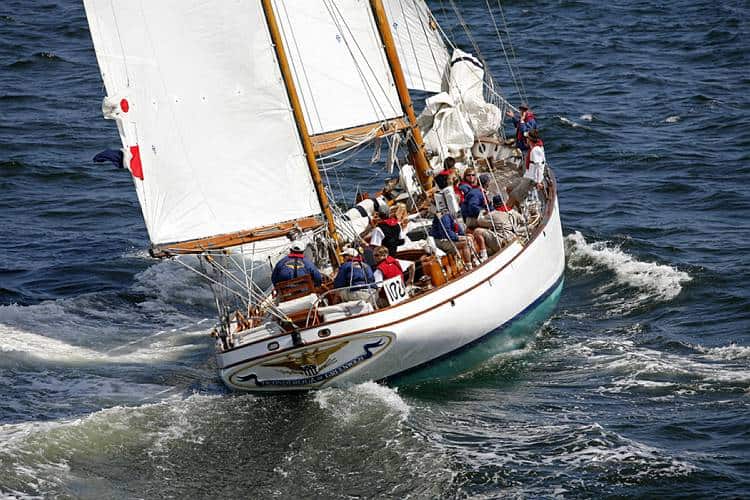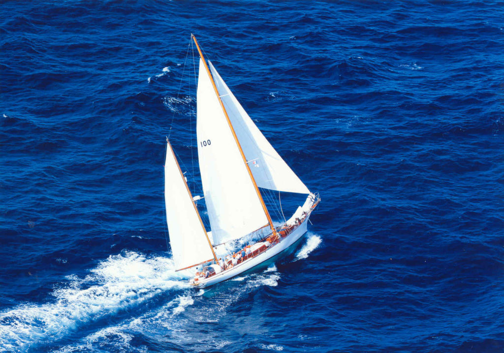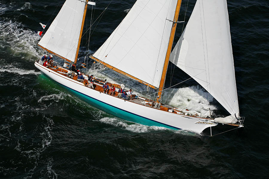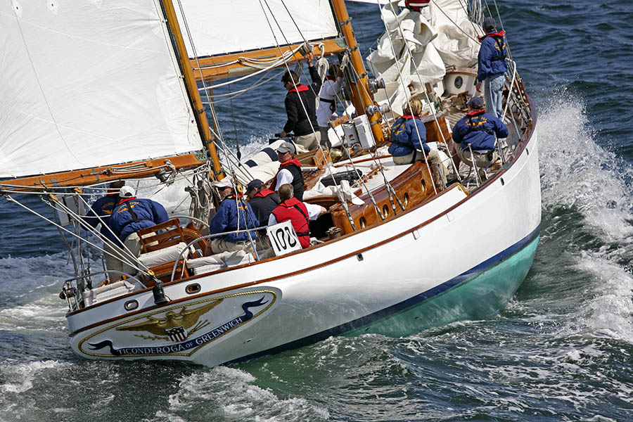 Launched in 1936, TICONDEROGA (72′ LWL and 86’ LOA) has set more elapsed-time records than any ocean racer in history. She finished first in twenty-four of her initial thirty-seven races and has held more than thirty course records in races on several oceans, surpassing even the best performances of the hard-driven nineteenth-century clipper ships.Many also consider TICONDEROGA also to be one of the most beautiful ocean racers ever. Her creator, L. Francis Herreshoff, shaped her for “afternoon sailing,” giving her uncommon elegance of form with a clipper bow, elliptical transom, and a raked rig. It is these qualities of unsurpassed opulence and beauty, combined with her astonishing speed, which have made Ticonderoga so incomparable.