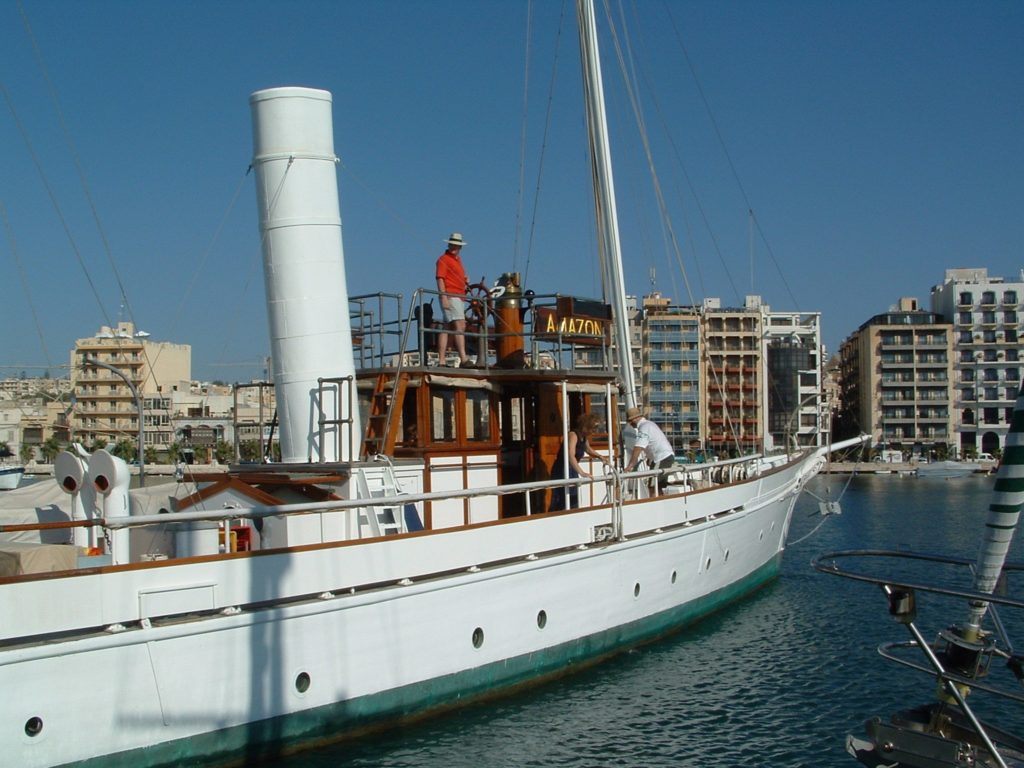 AMAZON has since been in the Mediterranean again, but has returned to her ‘home’ waters (Southampton Water) for the time being. A steady programme of maintenance designed to ensure AMAZON’s continued survival as an operational original historic artefact has been undertaken with exceptional and painstaking care over the last few years.
