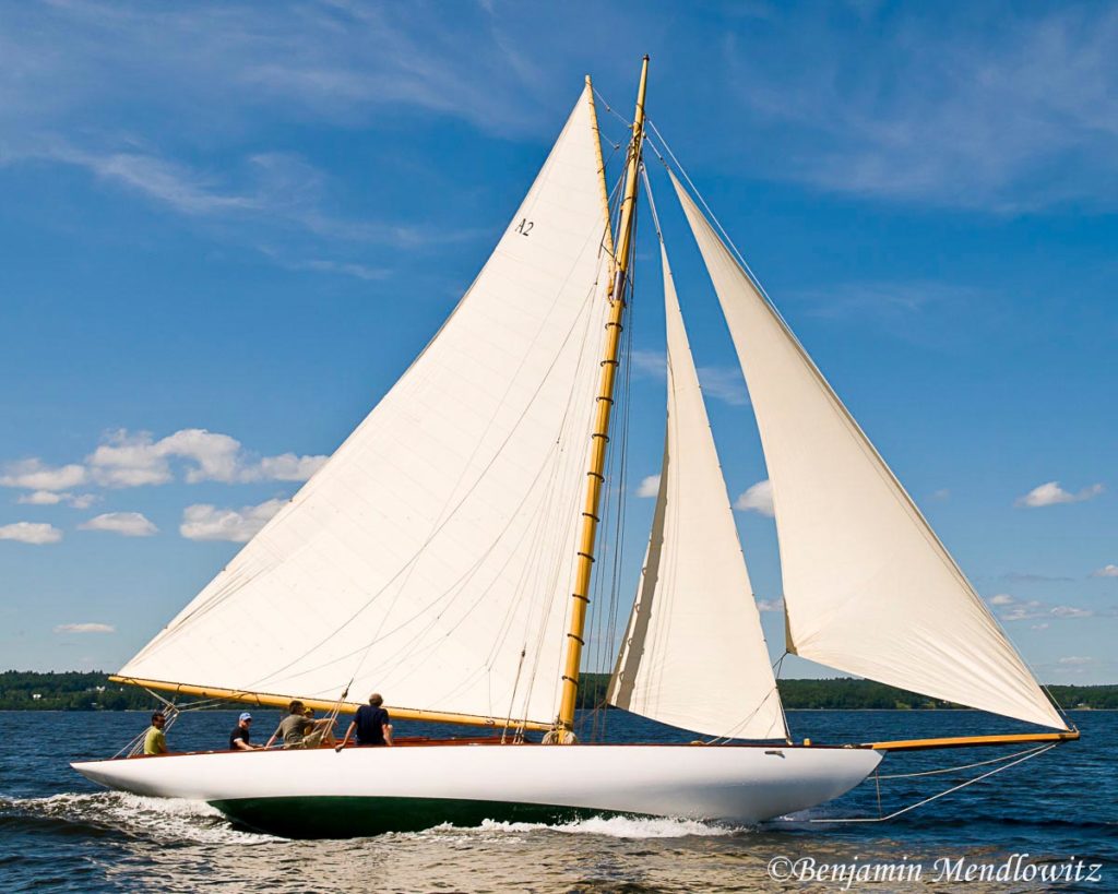 As with MASHNEE of the same design, she emerged 106 years after first launched, fully and authentically restored. French & Webb did the work and simultaneously brought along QUAKERESS II and LADY M (ex-EVELYN) of the same class, launching them fully side-by-side and fully rigged at Belfast, Maine, in 2008. A spectacular launching for three spectacular classic yachts!Already a member? Log in herePhotos