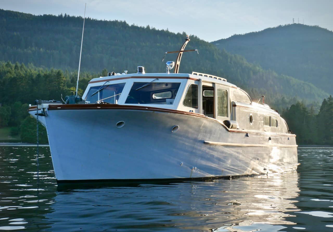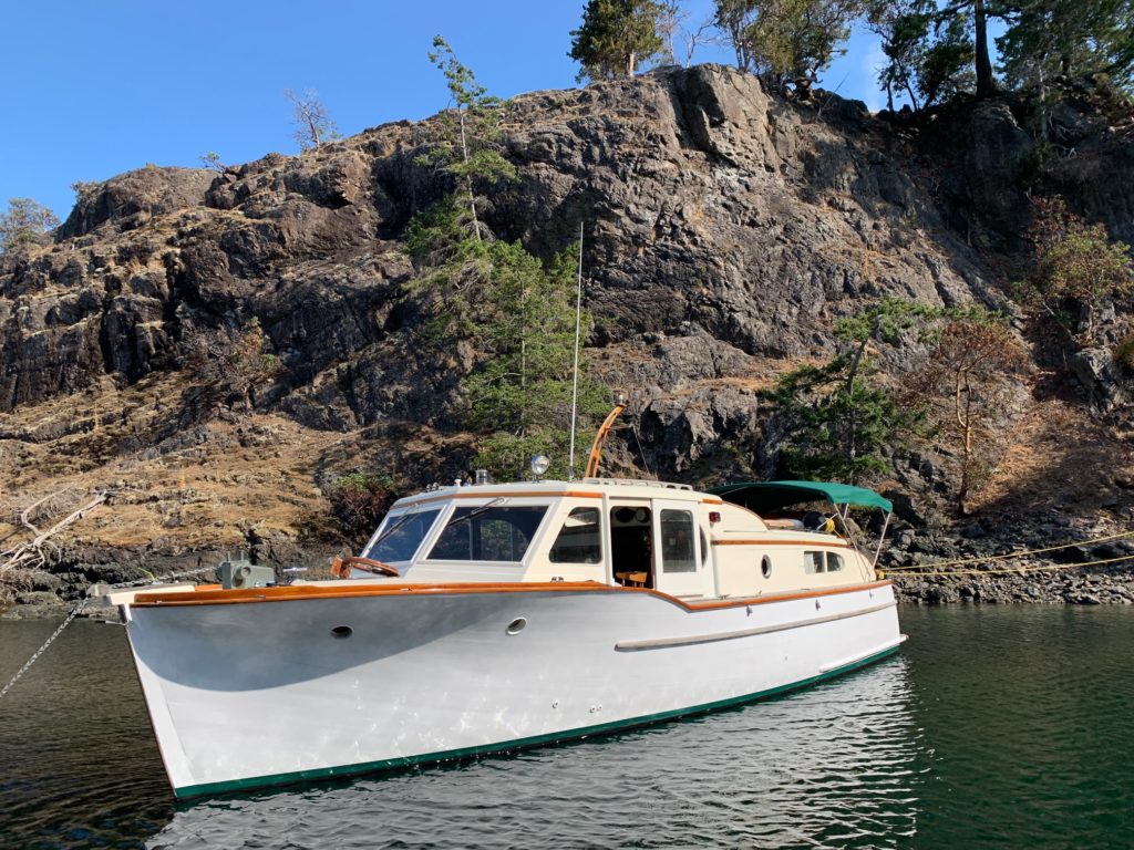 Designed by Ed Monk Sr., MV Zephyrus was built in 1954 in Nanaimo, British Columbia. Carvel planked, yellow cedar on white oak frames below the waterline, red cedar above. When Lady Z acquired Zephyrus in 2017, she was bow-heavy, overpowered by a Perkins 6.354 horizontal turbo engine. Re-powered with a Perkins 4.236 in 2018, Zephyrus now sits with a more refined balance from stem to stern. Annual maintenance and restoration work over the past five years is bringing this beloved classic back into fine form.Already a member? Log in herePhotos